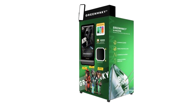 Mit dem Green MNKY Glassmaster bieten wir eine moderne Lösung für die automatisierte Anbringung von Panzerfolien auf kompatiblen Smartphones. Der Automat bringt die Schutzfolie sauber, passgenau und in kurzer Zeit auf das Display auf.