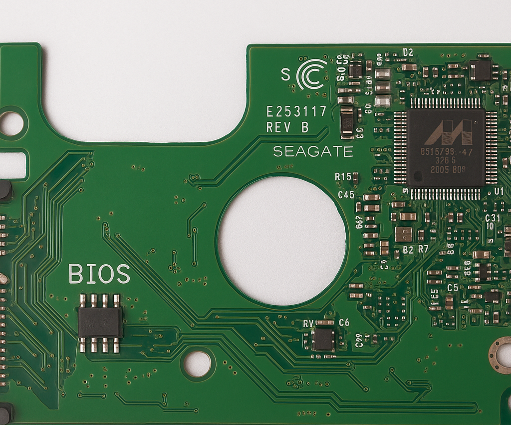 Denn: Jede Platine hat ihren eigenen BIOS-Chip, auf dem wichtige Kalibrierungsdaten gespeichert sind – die nur zu genau dieser Festplatte passen.